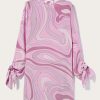 This kaftan is a playful take on Pucci’s signature billowing silhouettes. It’s cut to a maxi-length design, decorated with the Orchidee print and fitted with self-tie cuffs that can be styled into bows. The crystal-embellished collar creates the illusion of a necklace and adds a characteristically playful spin.