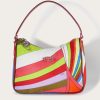 Showcasing a curved metal brow bar and rimless square lenses, these mirror sunglasses highlight Pucci’s directional approach to design. Note the logo at the temple.