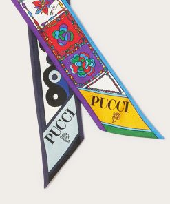 The storied Iride and Festa prints enrich this scarf, covering it with oceanic blues on one side and vibrant colours on the other. It’s cut from silk twill to a slim shape and bordered with Pucci logos: note the house moniker and intertwined fish motif.