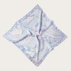 This crepe de chine scarf is covered with the Orchidee print in rich jewel tones. The corner is stamped with the house moniker and signature intertwined fish motif, while contrast borders lend it visual interest. It’s designed to be used as a head covering.