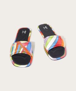 The concentric lines of Pucci’s storied Iride print sweep across these sandals. They’re crafted from silk to a minimalist silhouette with a petite logo plaque at the side.