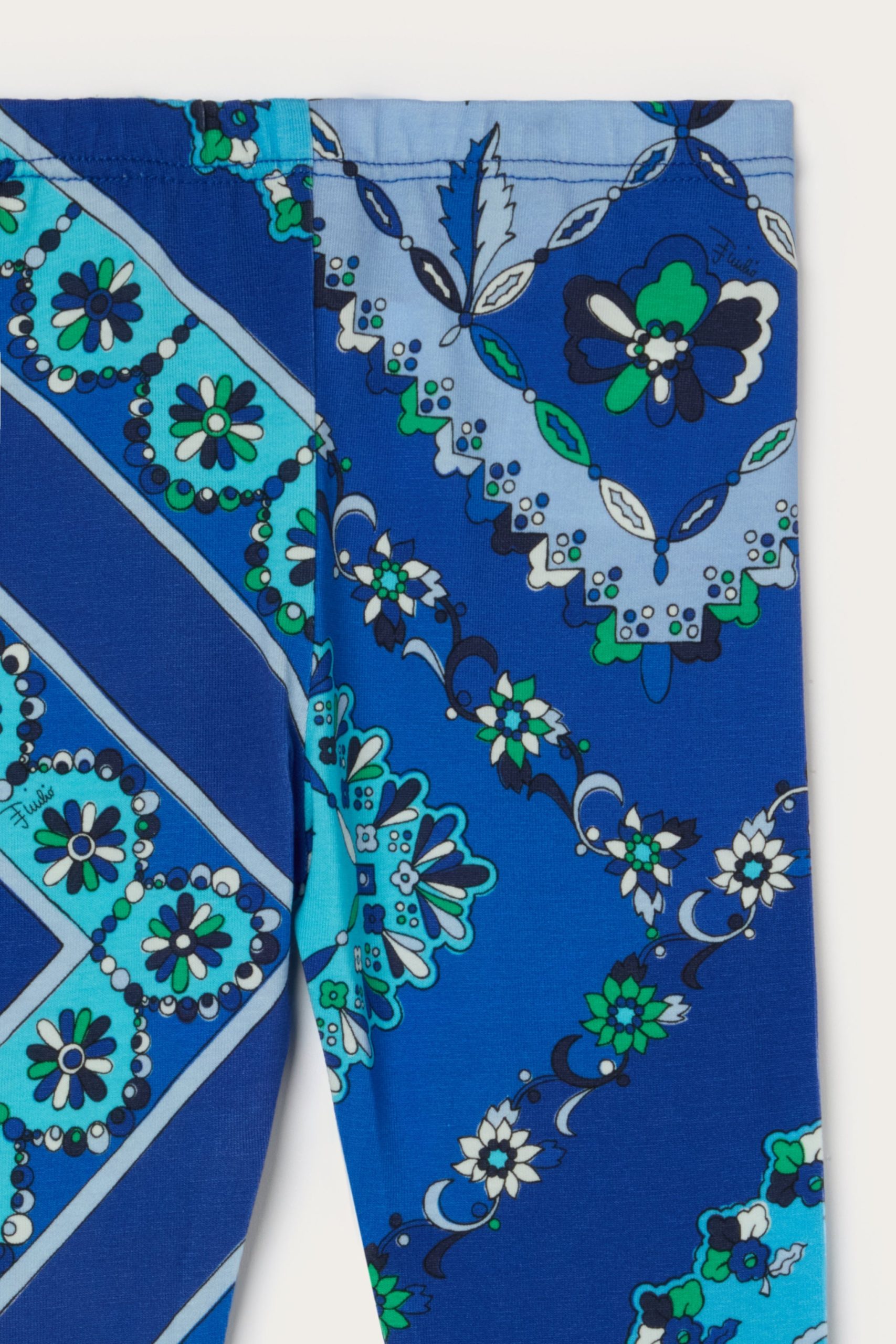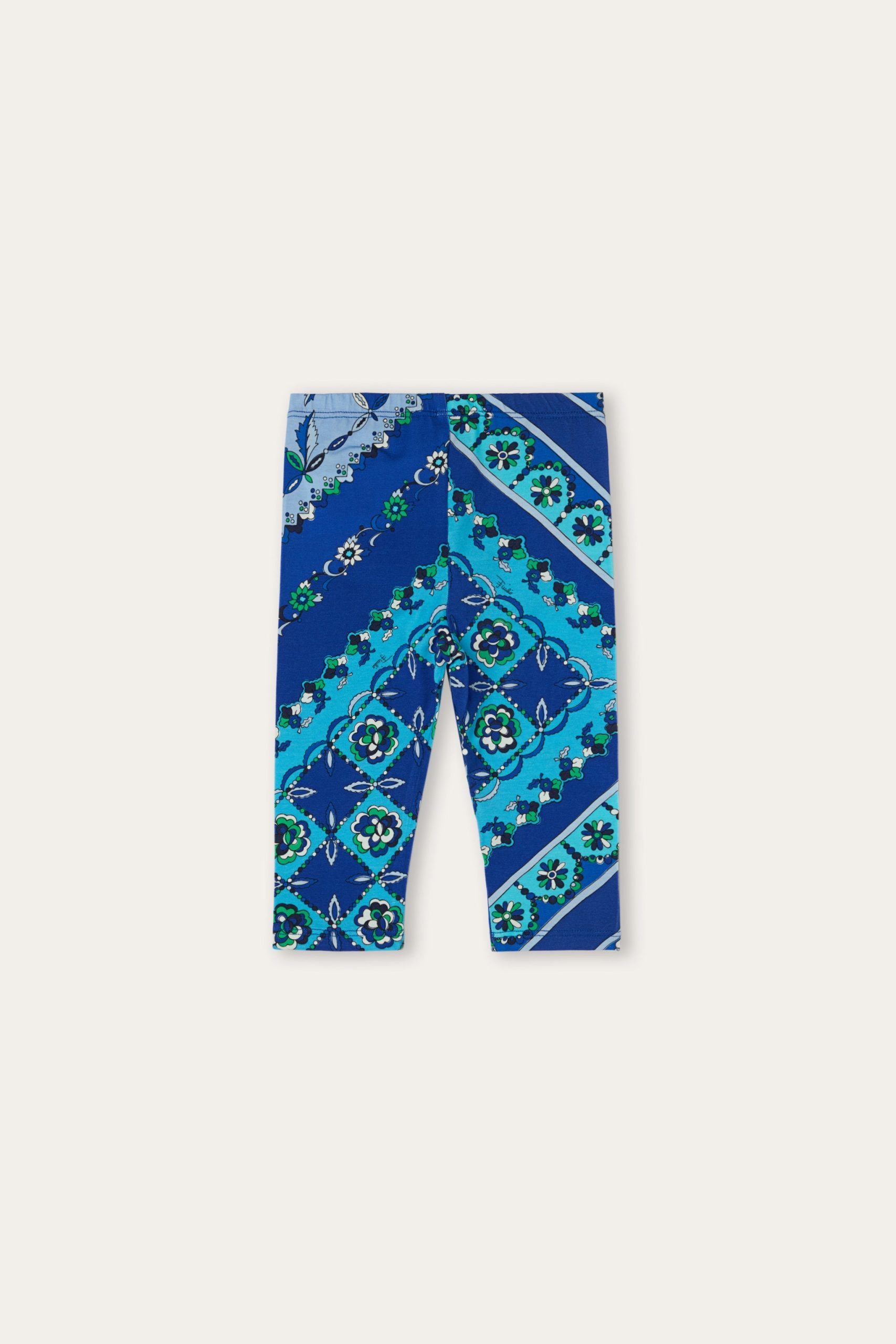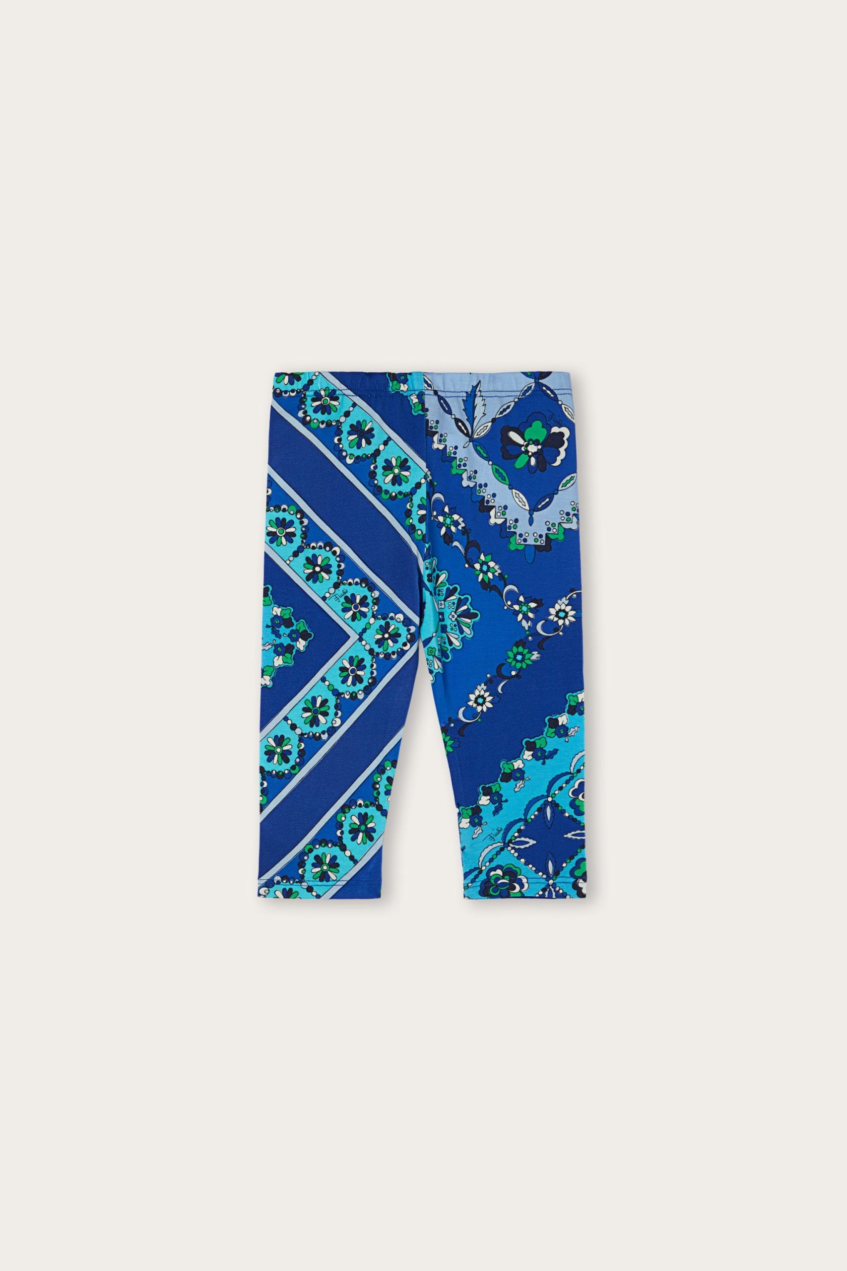 Perfect for running, jumping and moving freely. These stretch jersey long leggings hug the silhouette with a comfortable, stretchy fit designed for active, energy-filled days.The Festa print in blue and multicolor tones gives the garment a lively and playful touch, bringing all Pucci’s graphic dynamism to the Junior world.