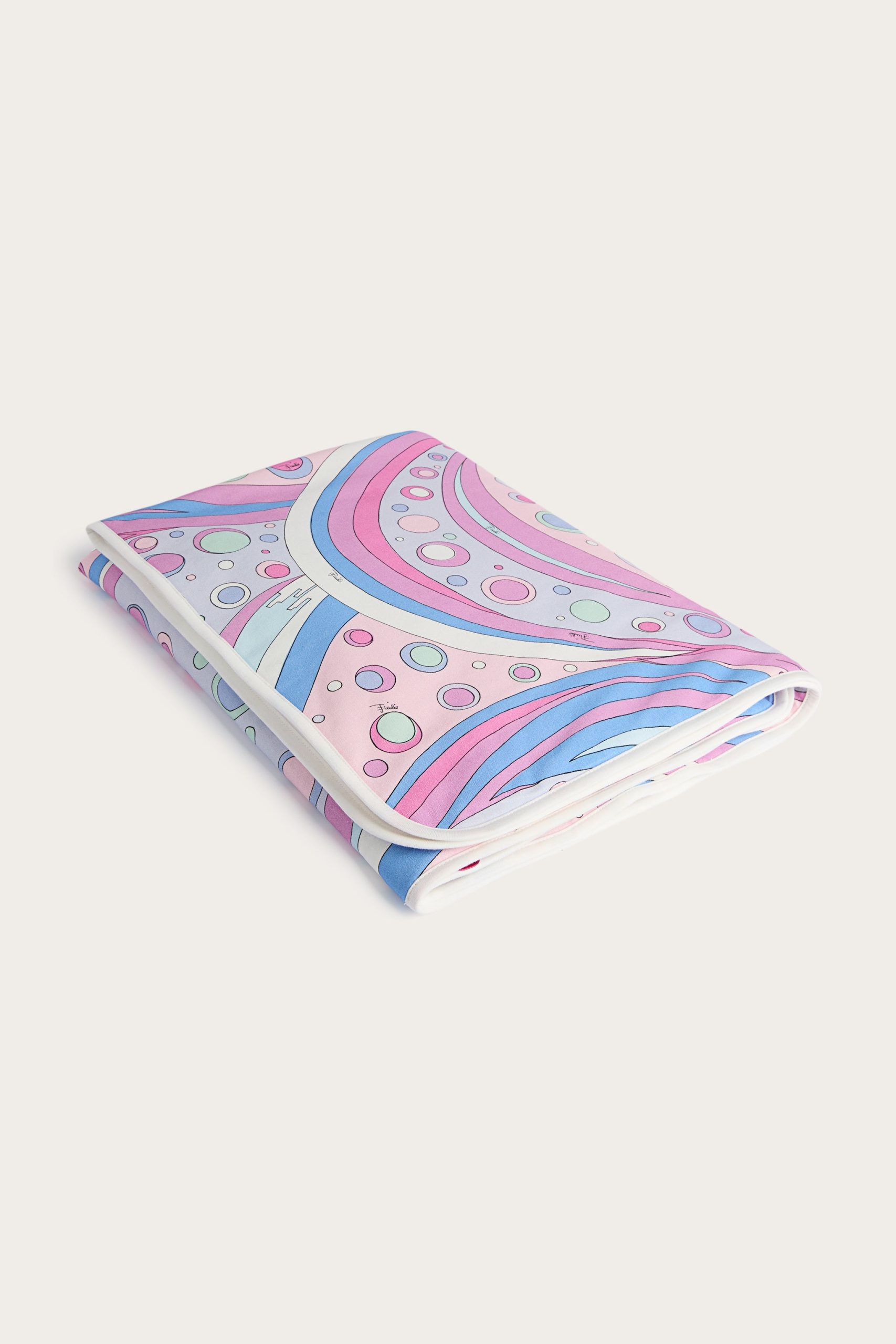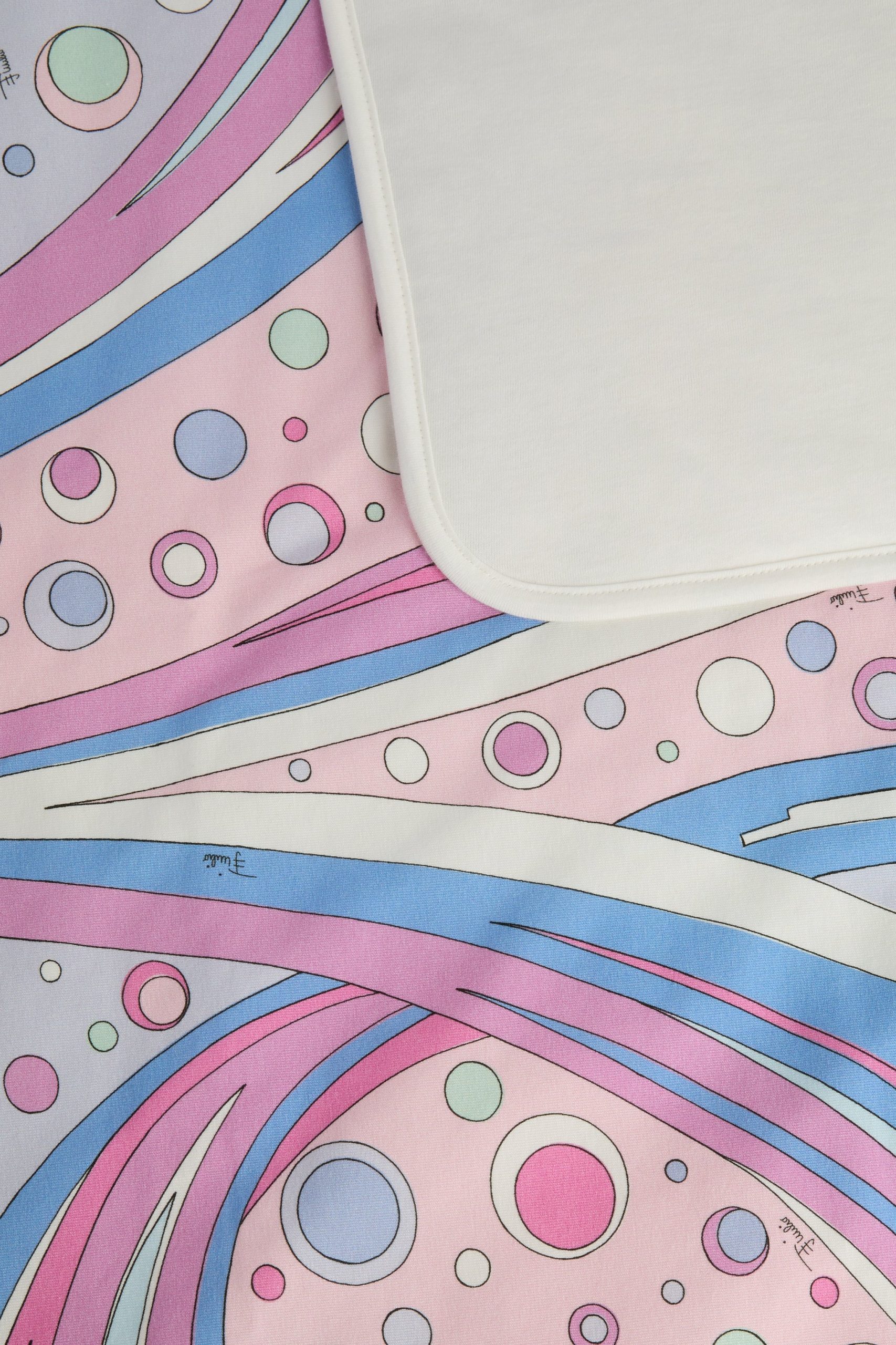 Wrapping like a cuddle, this stretch jersey baby blanket is designed to provide comfort and softness from the first days. The Fontane print in pink and multicolor dresses the garment with energy and tenderness, signing even the most tender moments with Pucci’s unmistakable touch.Perfect for the baby carriage, the crib or a relaxing moment in your arms, it is a practical and colorful accessory to always carry with you.