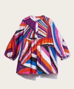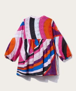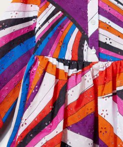A patchwork of the Iride print’s rays and Marmo swirls envelops this dress in a kaleidoscope of colour. It’s made from broderie anglaise cotton muslin with a front button placket and a softly pleated skirt.