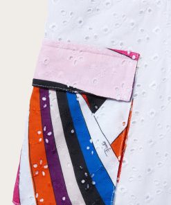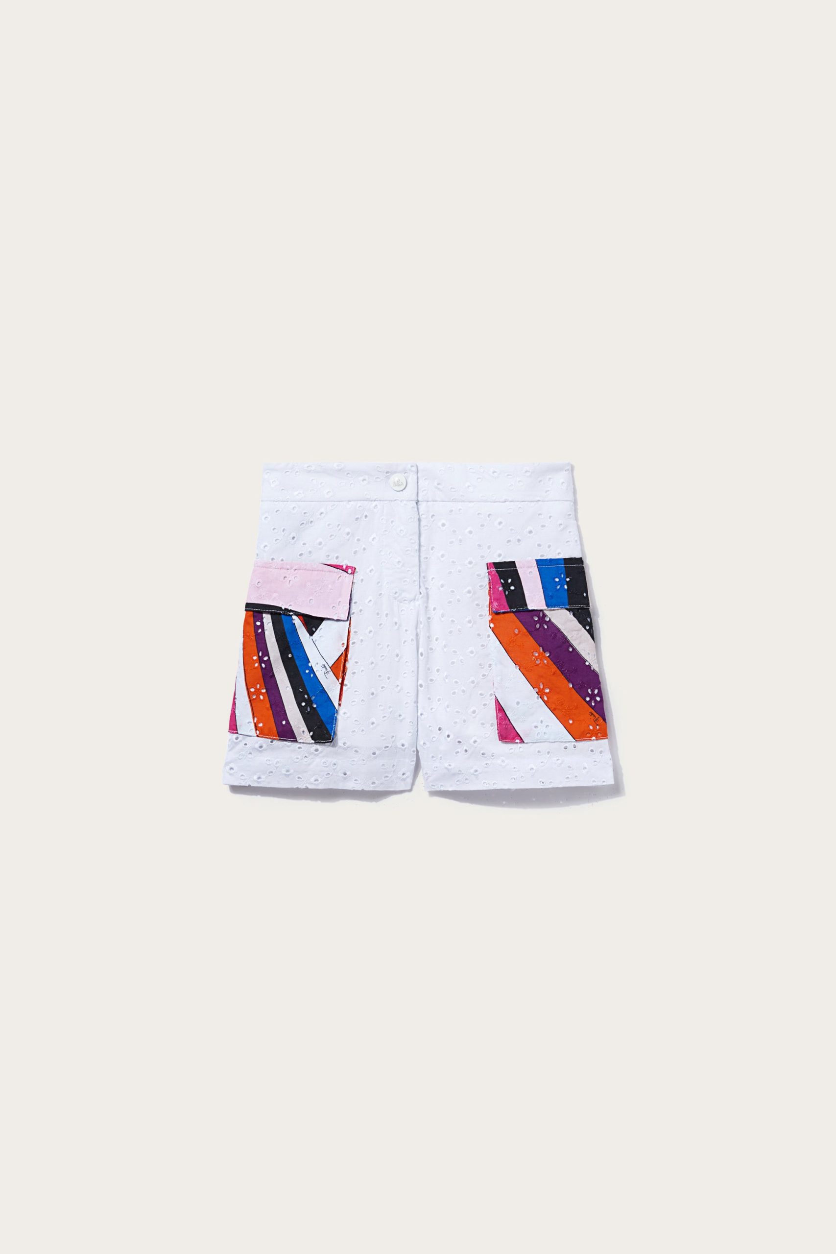 Vibrant fragments of the Iride print decorate the flap pockets of these shorts, adding pops of unabashed colour. They’re cut from broderie anglaise cotton.
