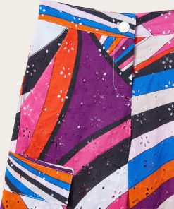 Drenched in the kaleidoscopic Iride print, these trousers bring Pucci’s rich pattern work to the fore. They’re cut from broderie anglaise with a flexible waistband and cargo pockets.