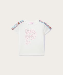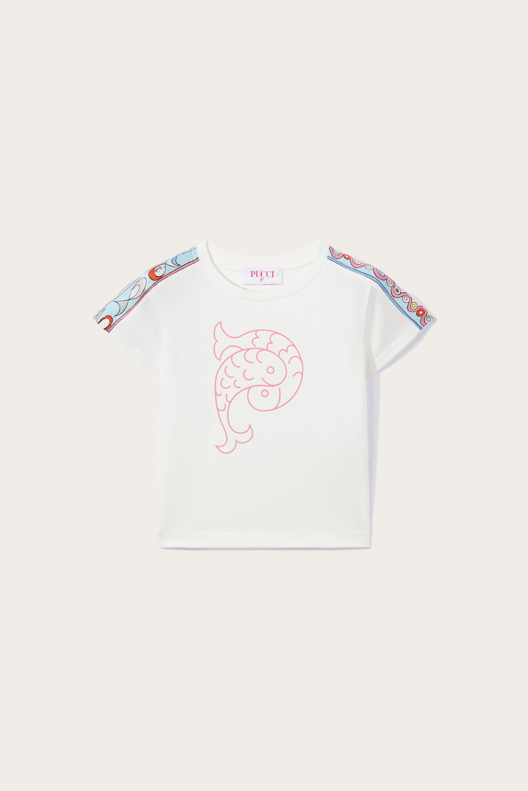 Pucci’s intertwined fish motif punctuates this white T-shirt. It’s cut from soft cotton jersey and finished with Onde-print swirls at the sleeves.