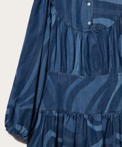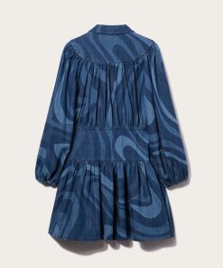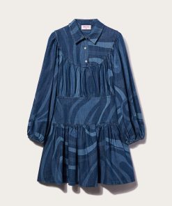 The classic chambray dress is elevated by Pucci’s captivating energy. It’s printed with snippets of the marble-inspired Marmo print in a palette of blues.