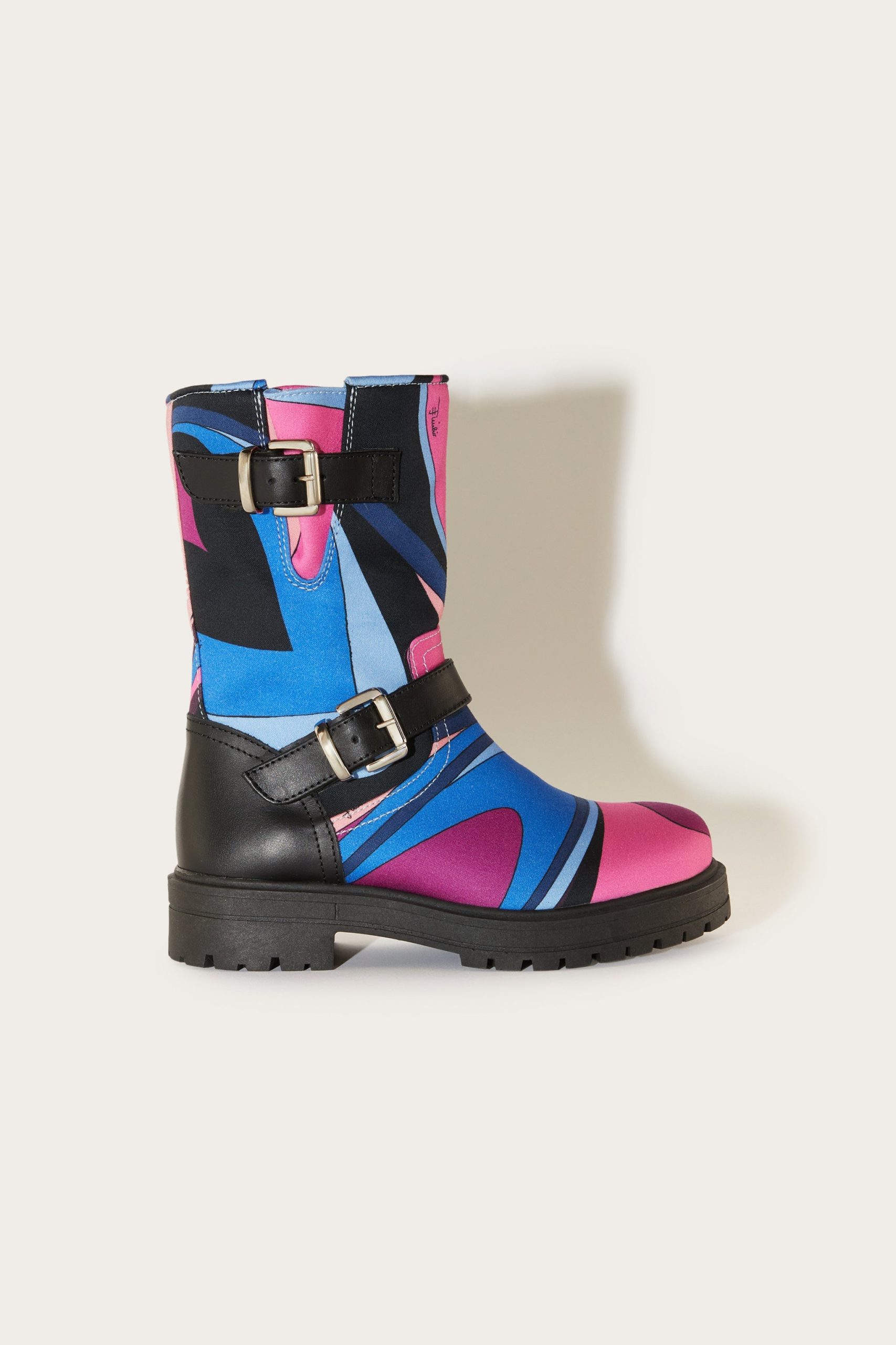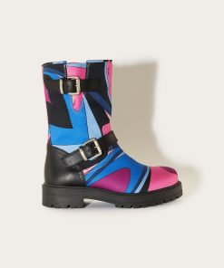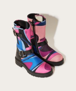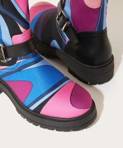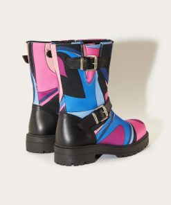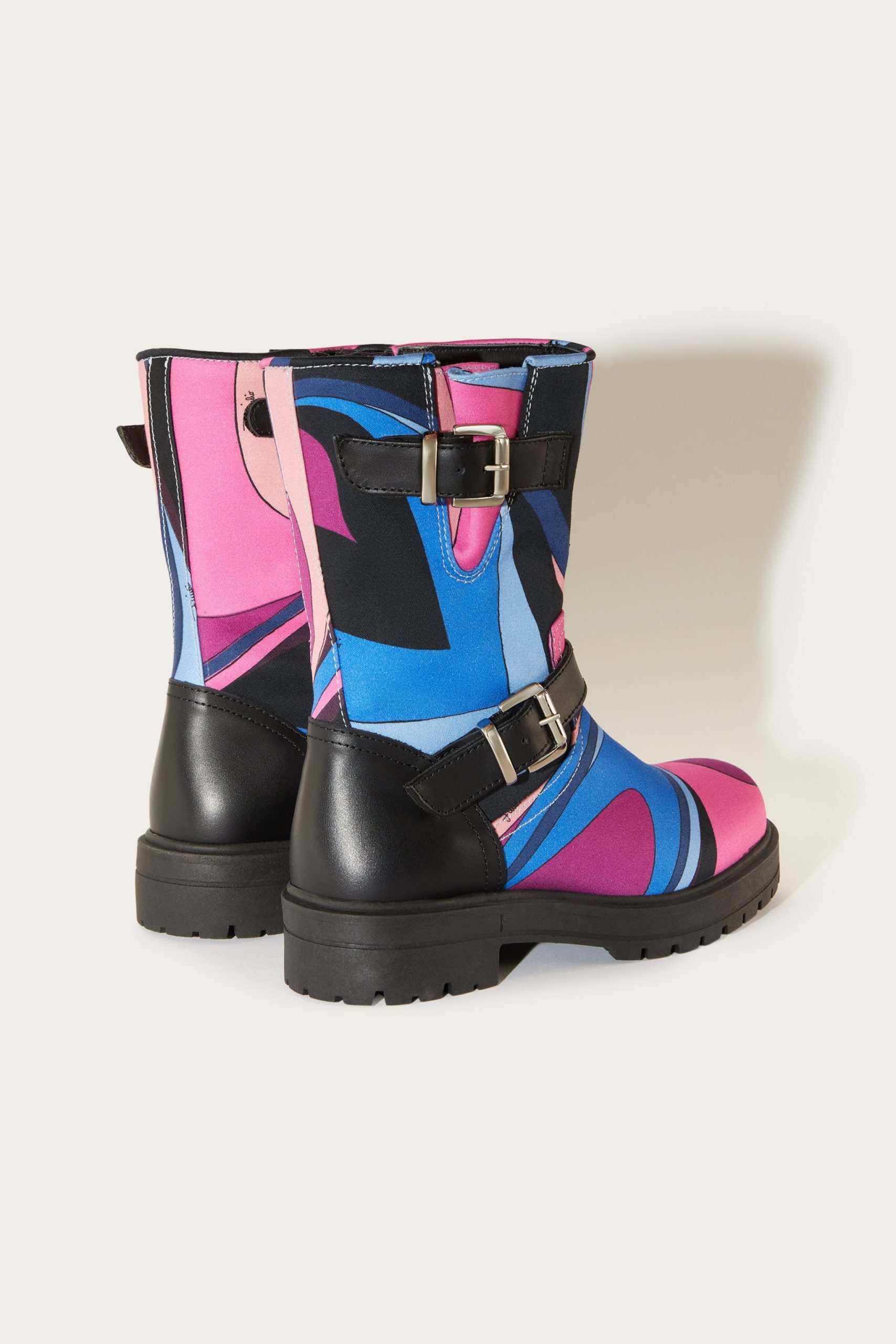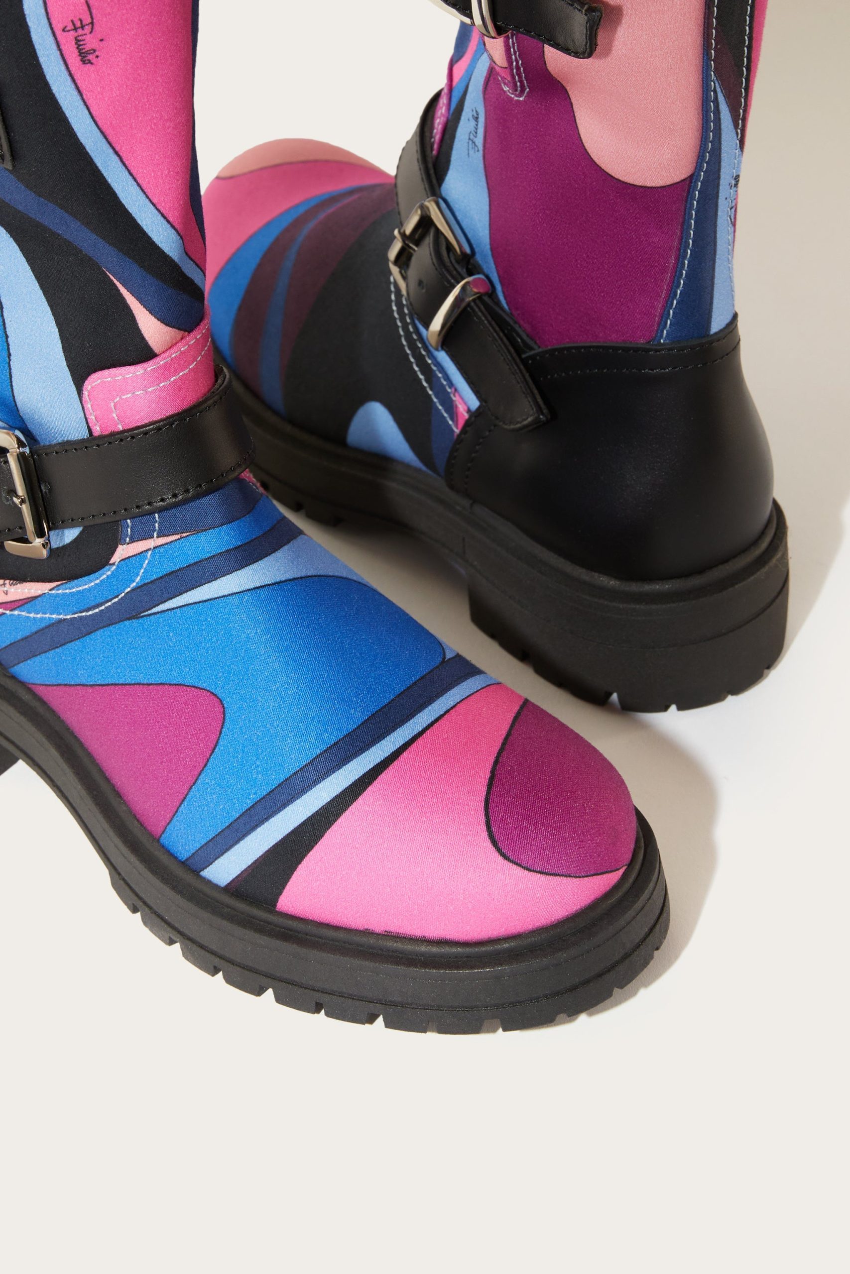 Embodying Pucci’s energetic spirit, these boots showcase the Onde print in vibrant pink and blue tones. They’re made from cotton satin, adjust with side buckles and rest on a sturdy rubber tread sole for traction.