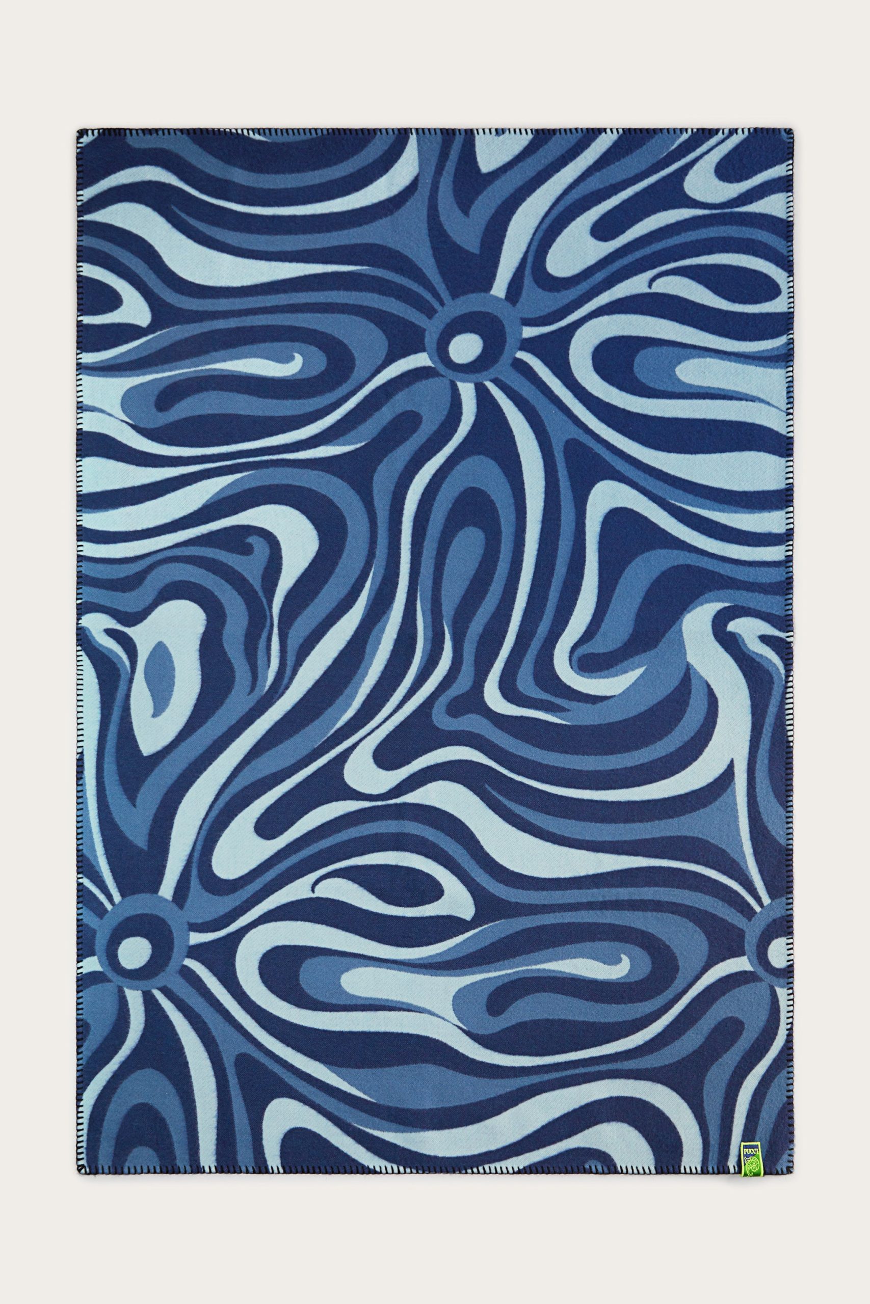 Evocative of the house’s oceanic inspirations, swirling Marmo-print waves wash over this blanket in a medley of blue shades. It’s decorated with logo appliqué depicting the intertwining fish – a motif introduced by Camille Miceli.
