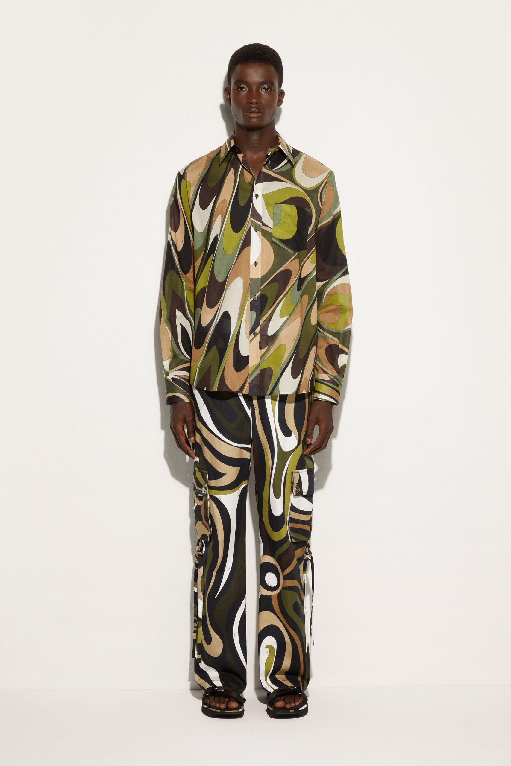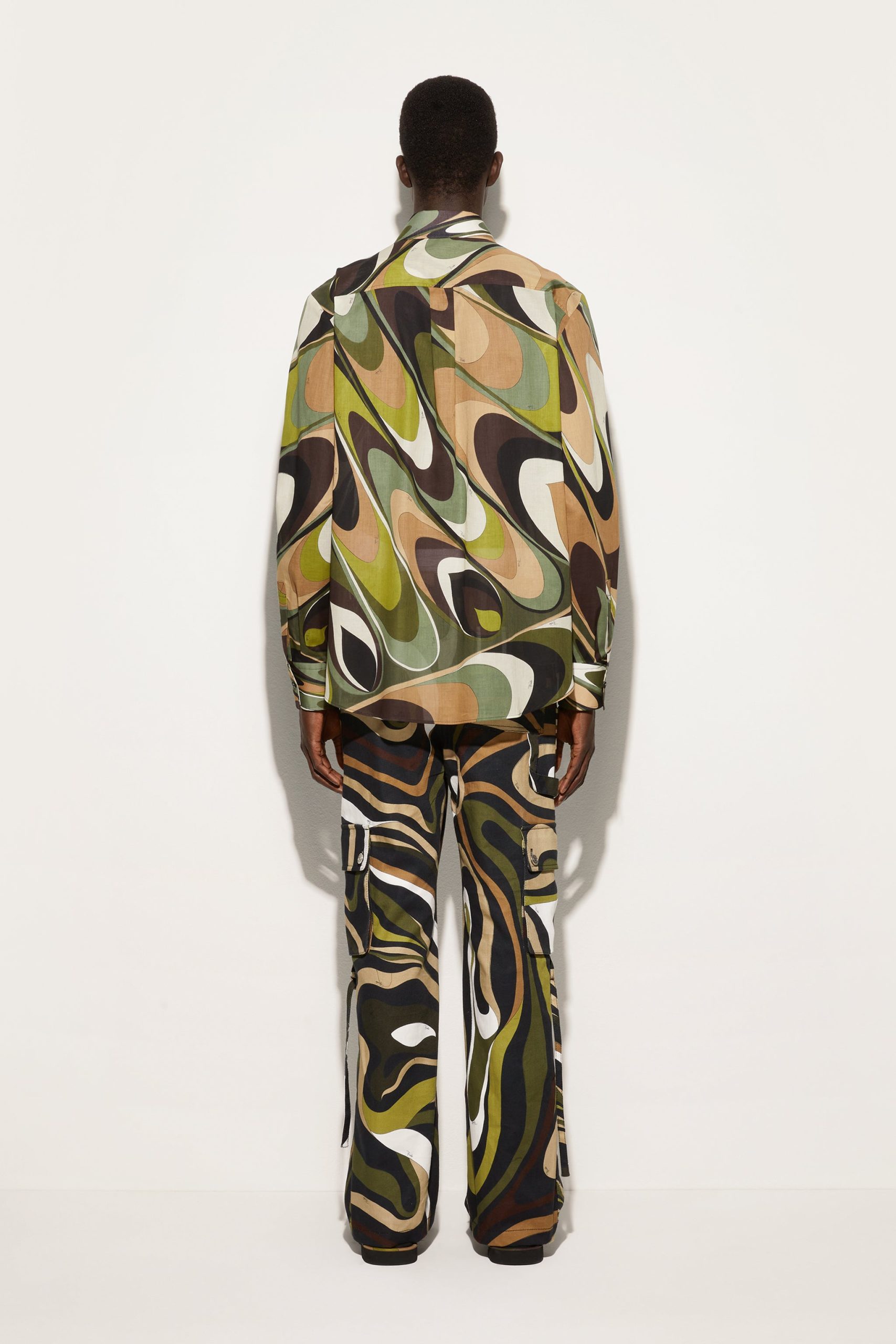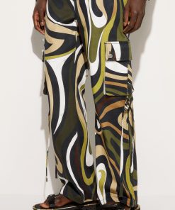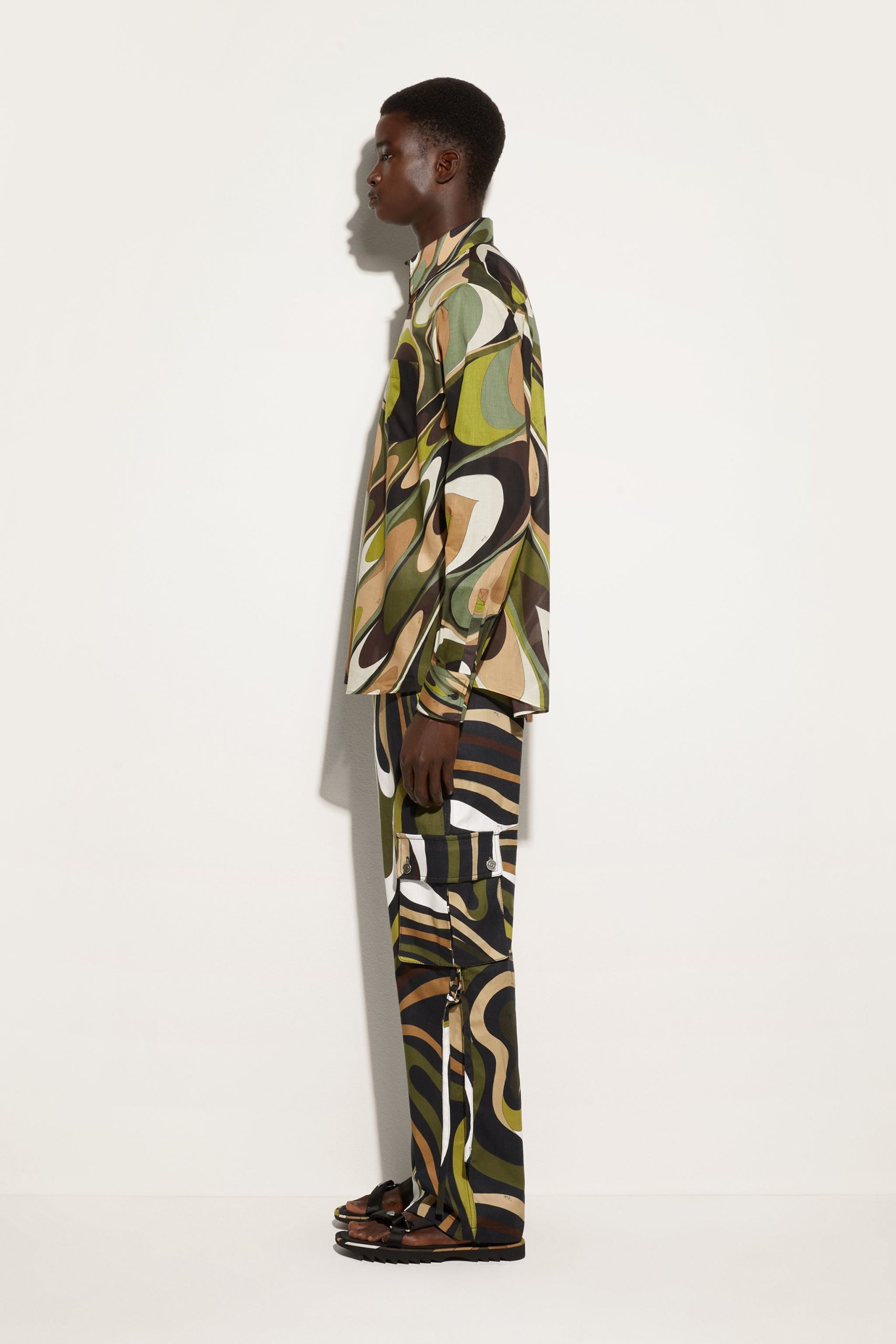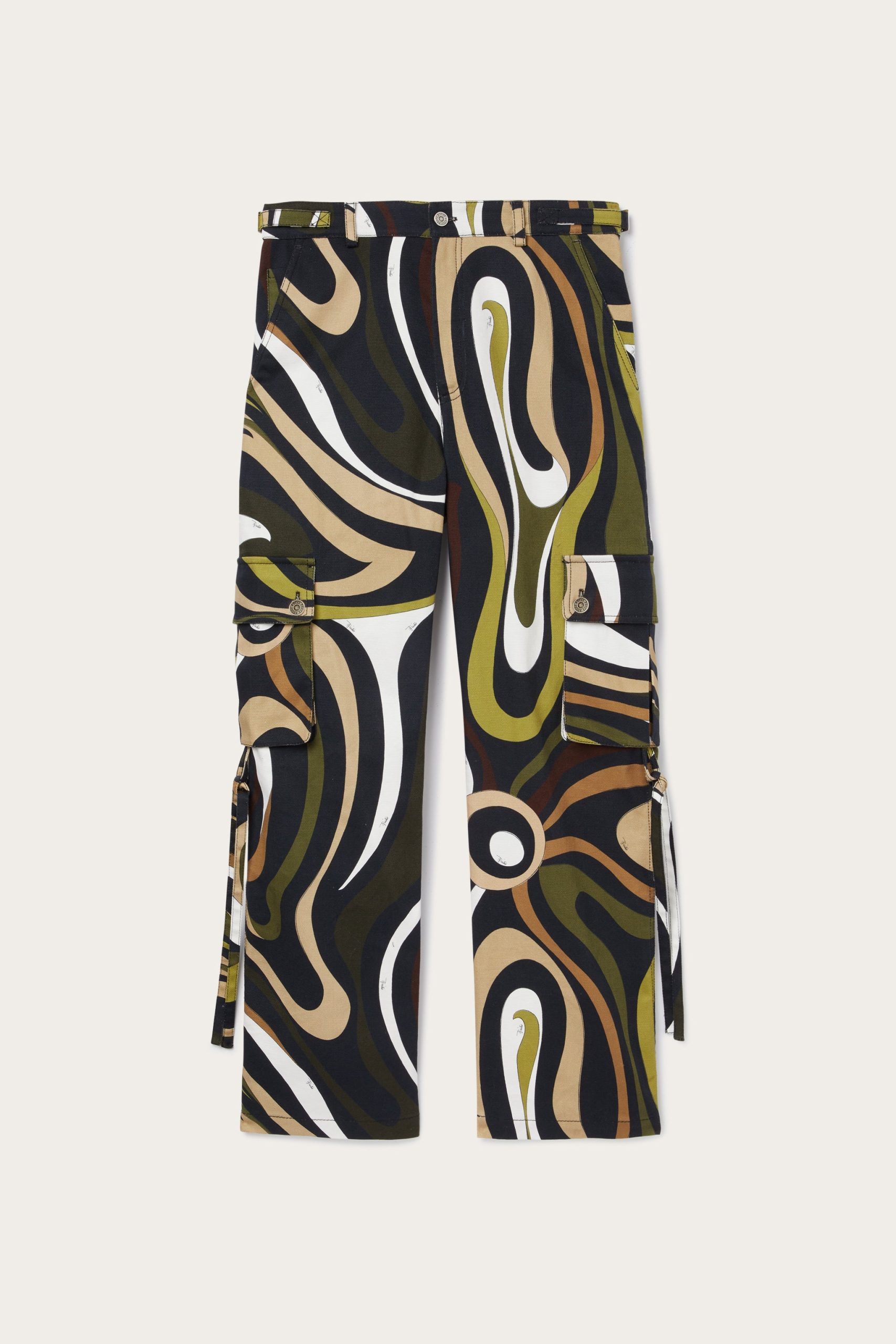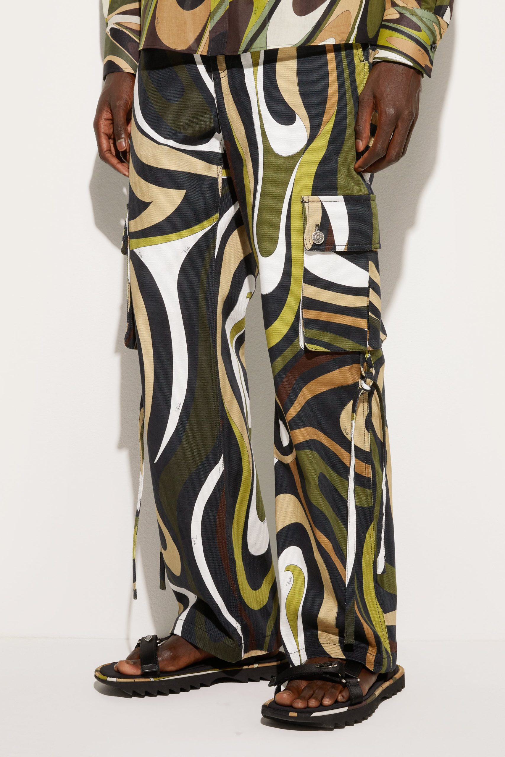A wardrobe classic revisited with the dynamism of the Marmo print in khaki. These cargo pants combine functionality and style, thanks to a comfortable fit and structure that enhances the silhouette without sacrificing comfort.Made from highly spun cotton, they feature a soft yet sturdy texture that is perfect for maintaining shape over time. Patch pockets on the legs add a utility touch, while the zip-and-button front closure ensures practicality and a flawless fit.