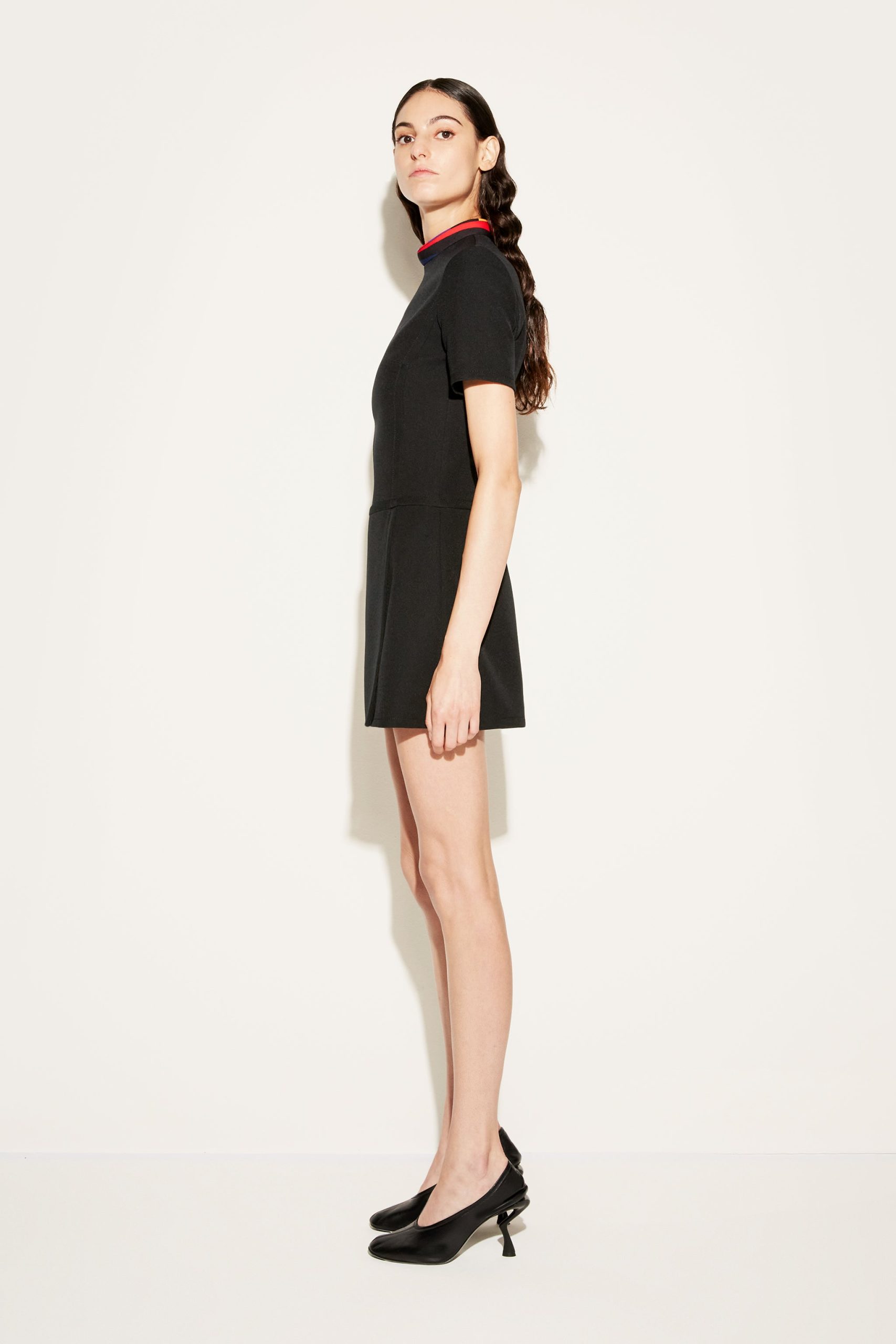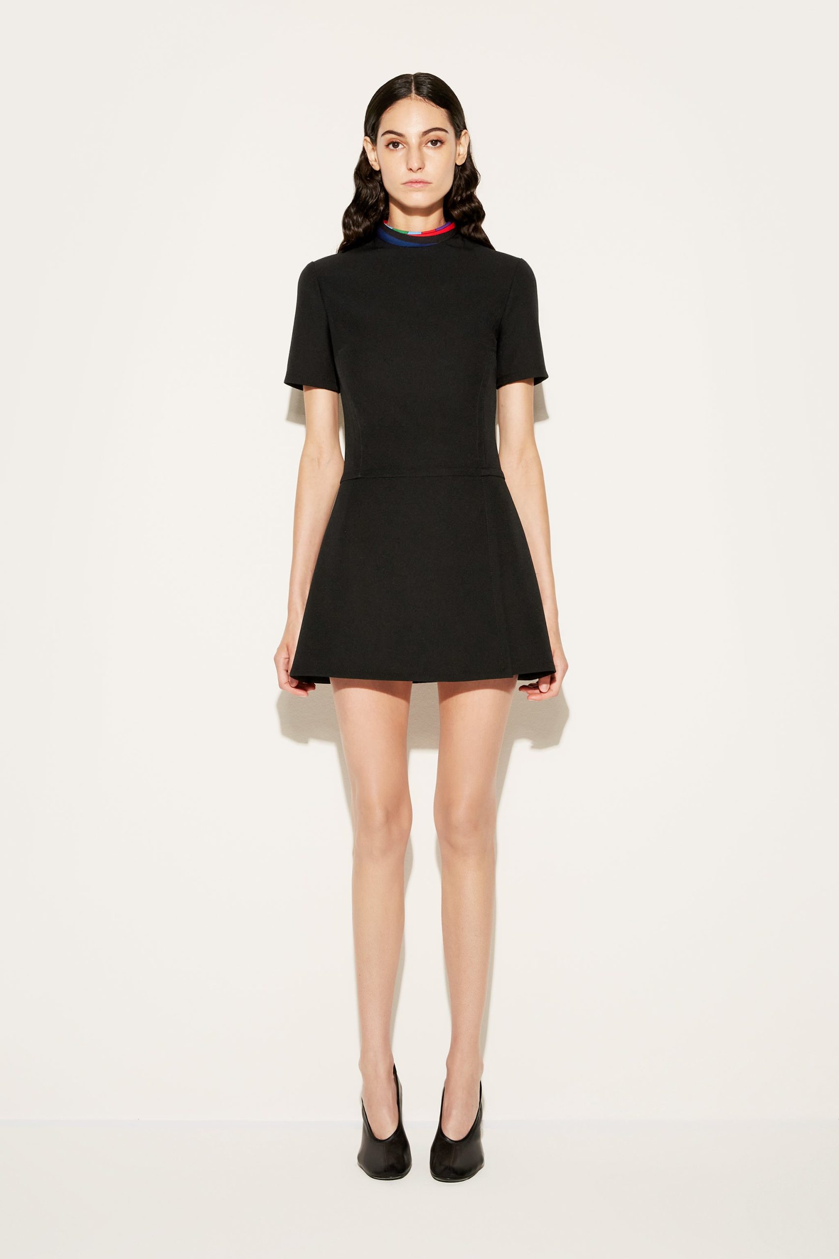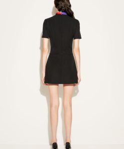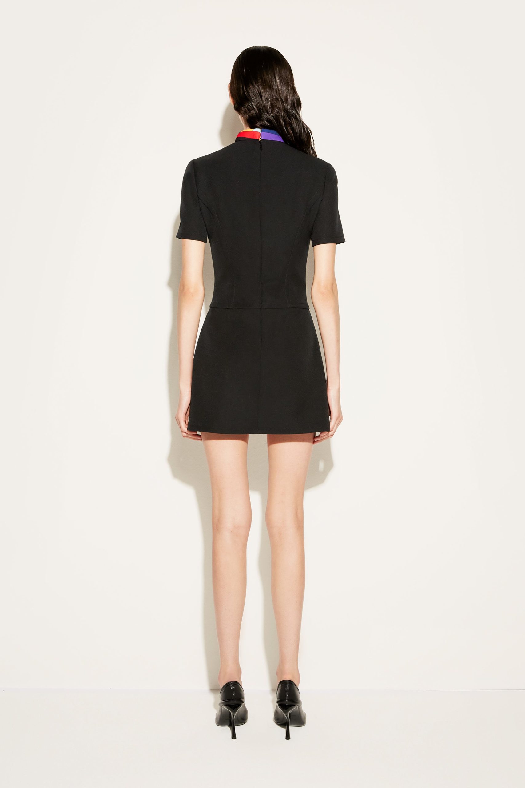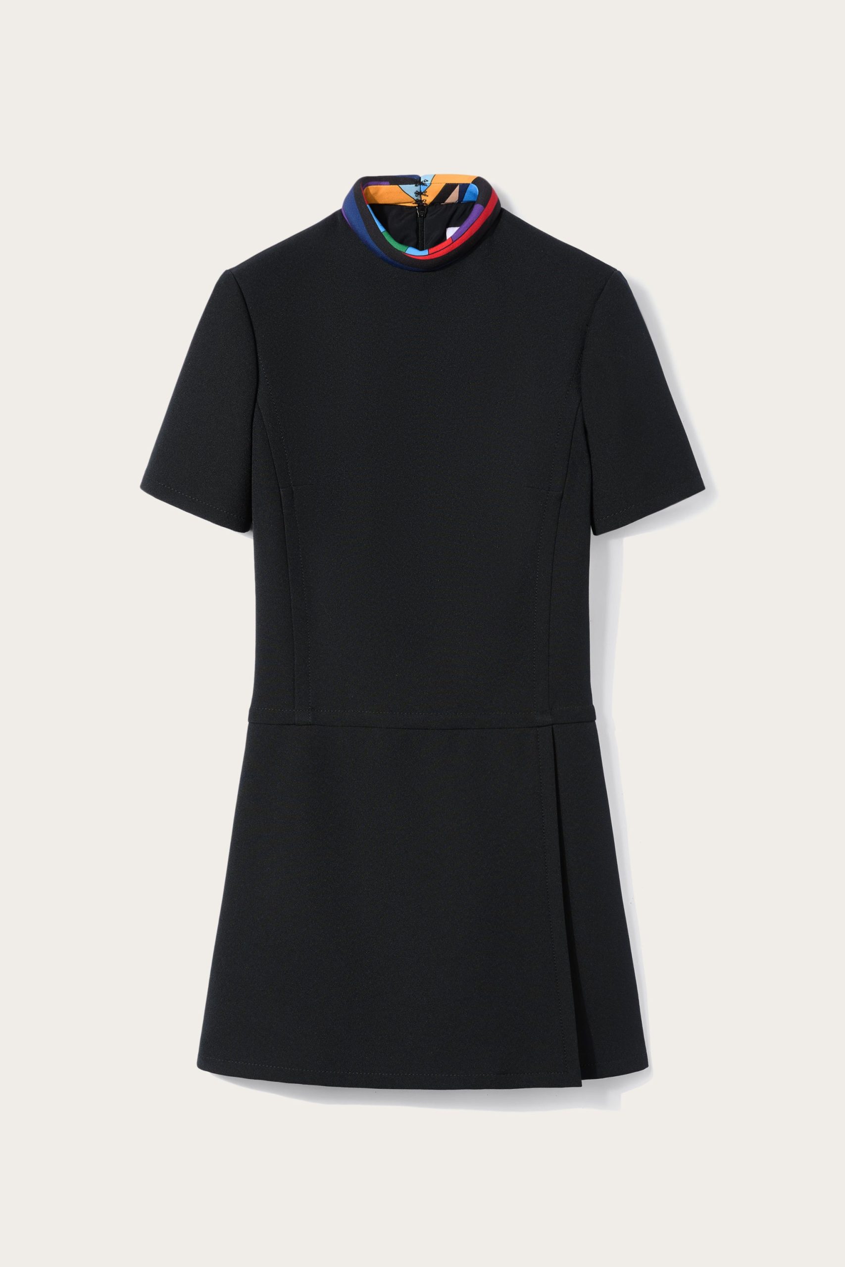 Pucci’s eclectic spirit brings an energetic flourish to this tailored mini dress. Cut from cady fabric, the short-sleeve silhouette is enhanced with a vividly coloured Iride-print collar.