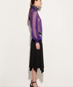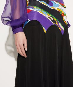 This skirt evidences Pucci’s ability to combine billowing silhouettes with daring patterns. It’s crafted from jersey muslin with a ruffled, asymmetric hem that mirrors the shape of the Orchidee-print panel at the waist.