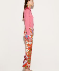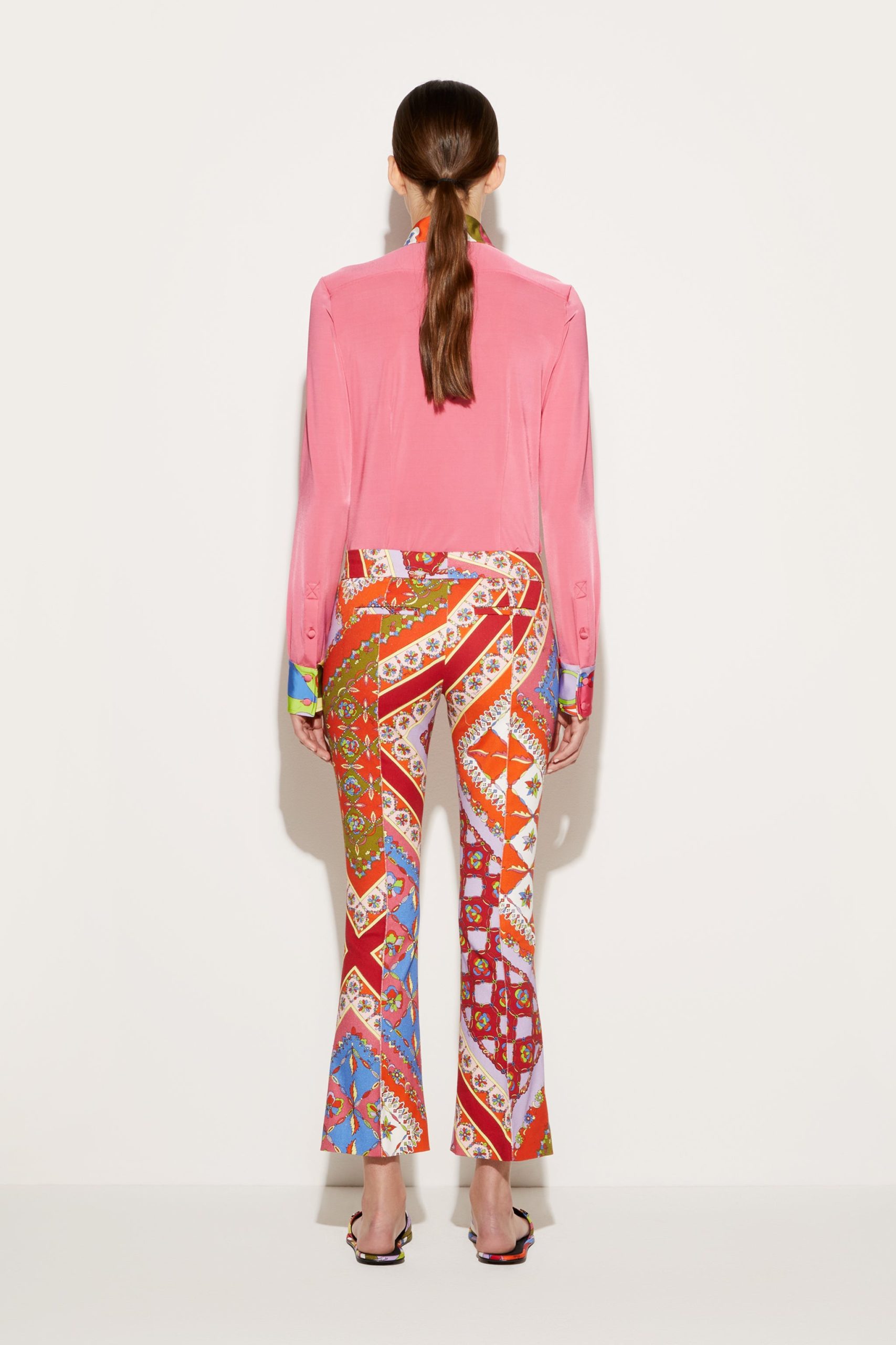 These trousers combine a tailored silhouette with Pucci’s kaleidoscopic pattern play. They’re cut to a low-waisted design that gently flares out at the hem and are decorated with the bold Festa print in a mix of joyful hues.