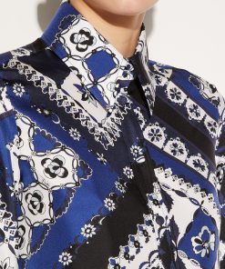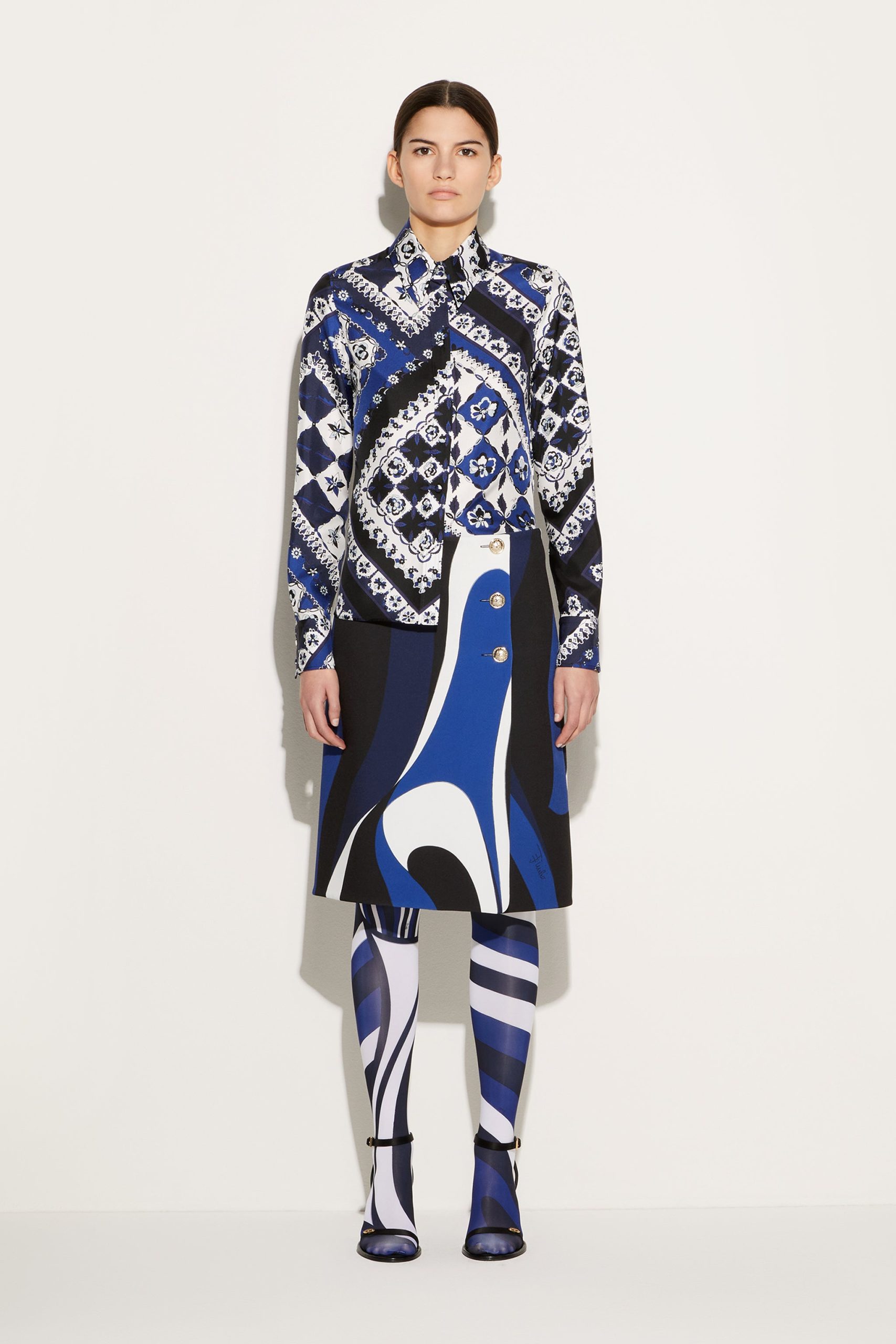 This silk-twill shirt presents Pucci’s spirited take on a classic wardrobe staple. It’s transformed by the Festa print’s lattice-like patterns and intricate florals in a tonal-blue palette.