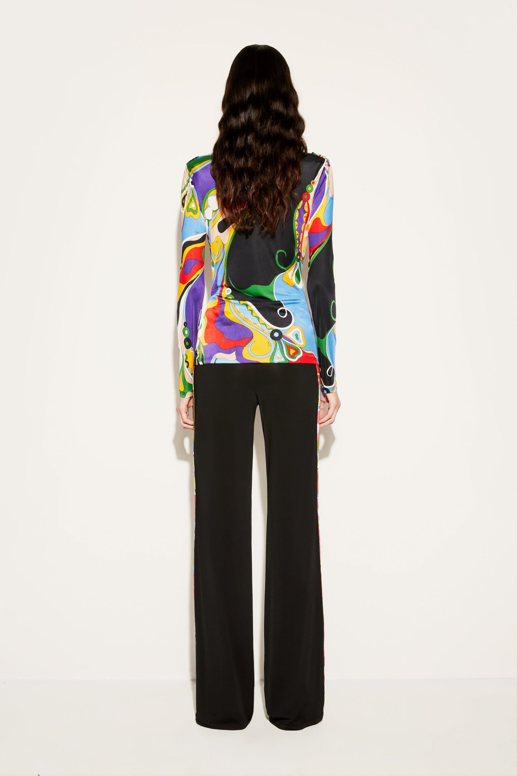 A captivating blend of Iride and Orchidee-print trims elevates these black trousers, lending them a dose of Pucci’s signature charisma. They’re crafted from jersey satin with an elasticated waistband and a straight leg.