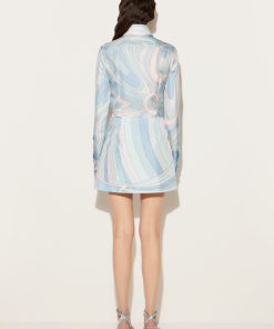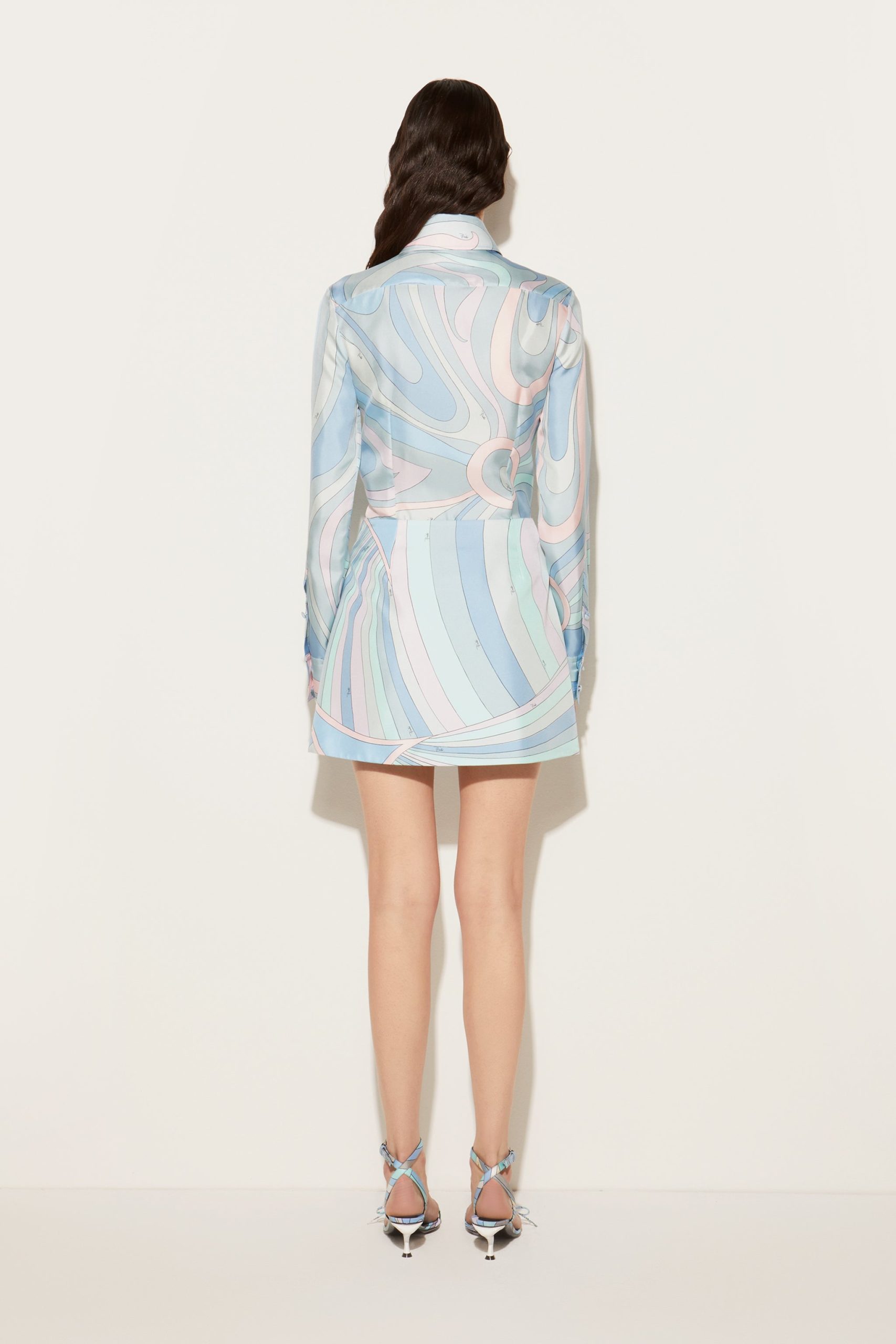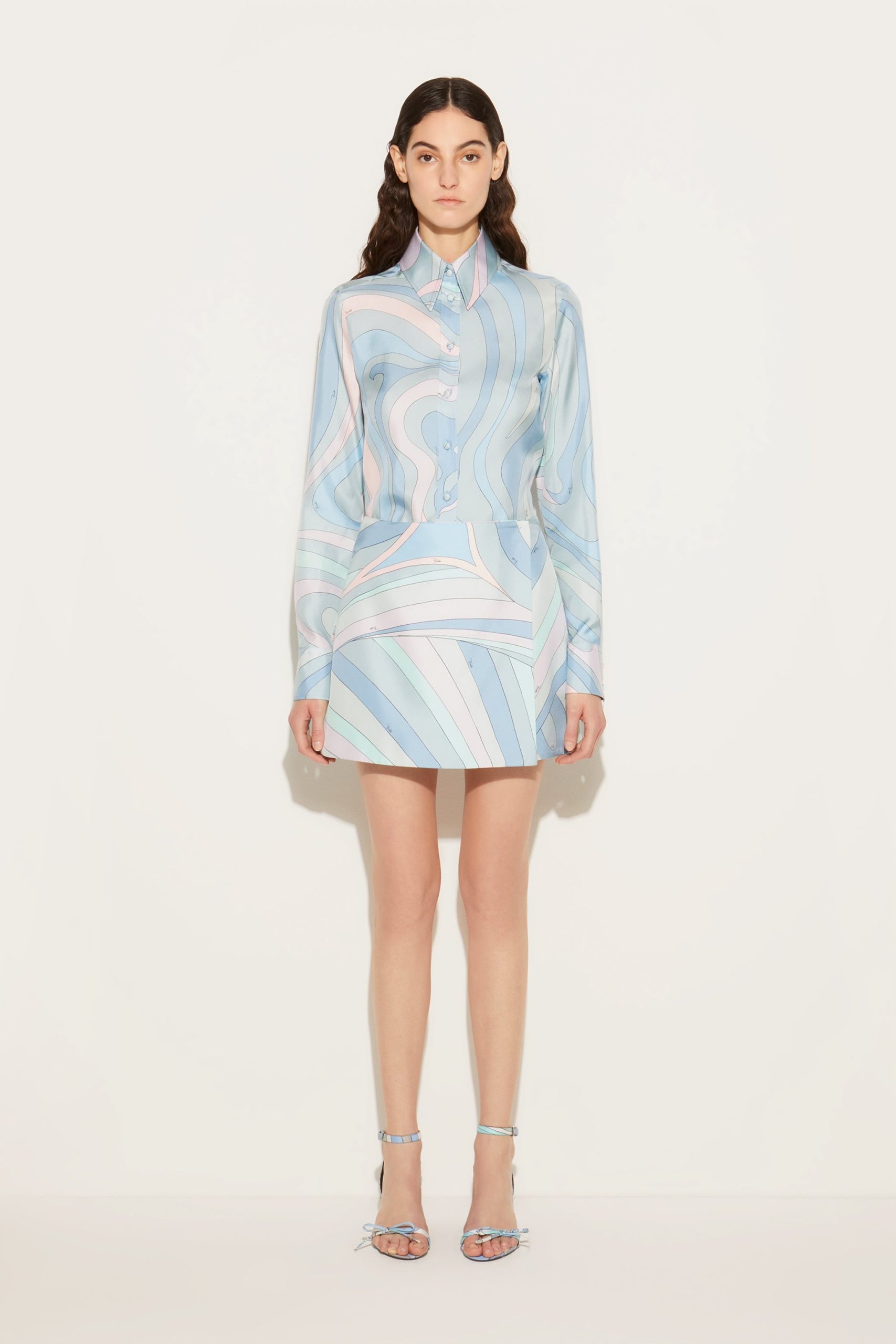 Evocative of the energetic spirit of the 60s, this skirt is cut to a micro-mini wrap silhouette and emblazoned with the Iride print in a medley of pastel hues.