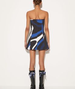 The Marmo print’s graphic swirls imbue this strapless dress with Pucci’s joyful sensibility. It’s cut from stretch-cady to a close-fitting silhouette that gently flares at the hip.