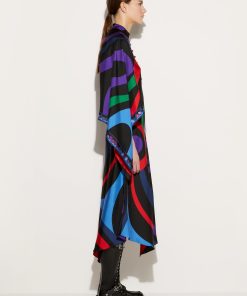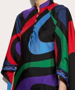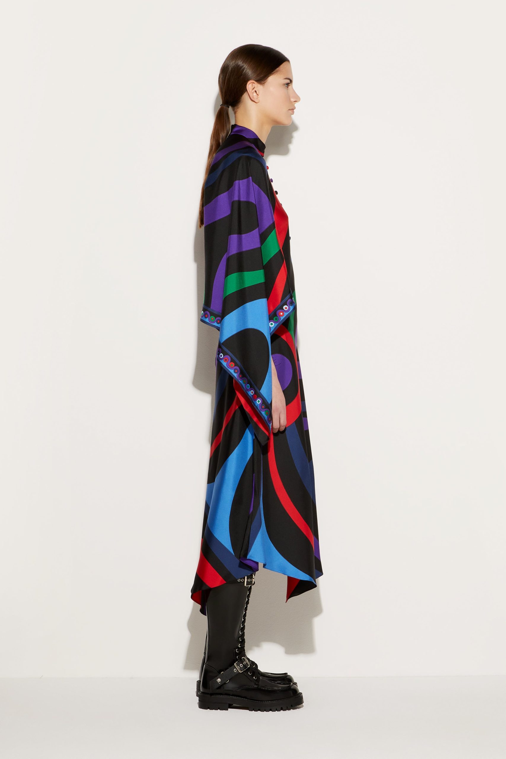 Inspired by marble’s natural patterns, the Marmo print is emblematic of Pucci’s famed pattern play and is splashed all over this kaftan. The relaxed silhouette is cut from signature silk twill to a billowing silhouette reminiscent of the house’s archival designs.