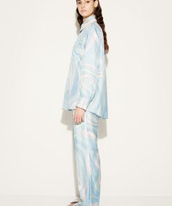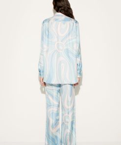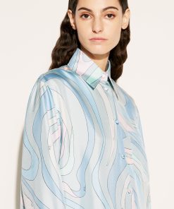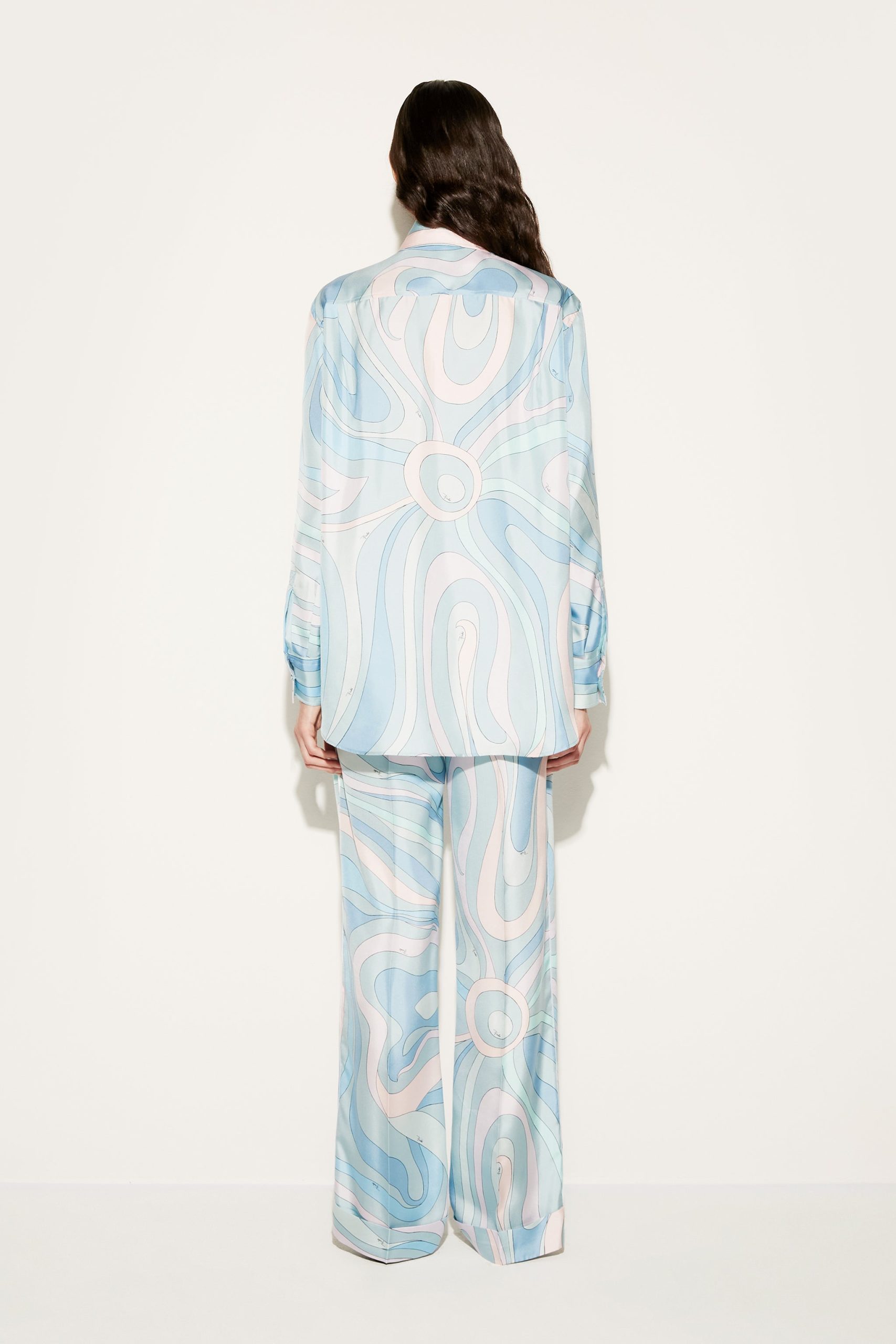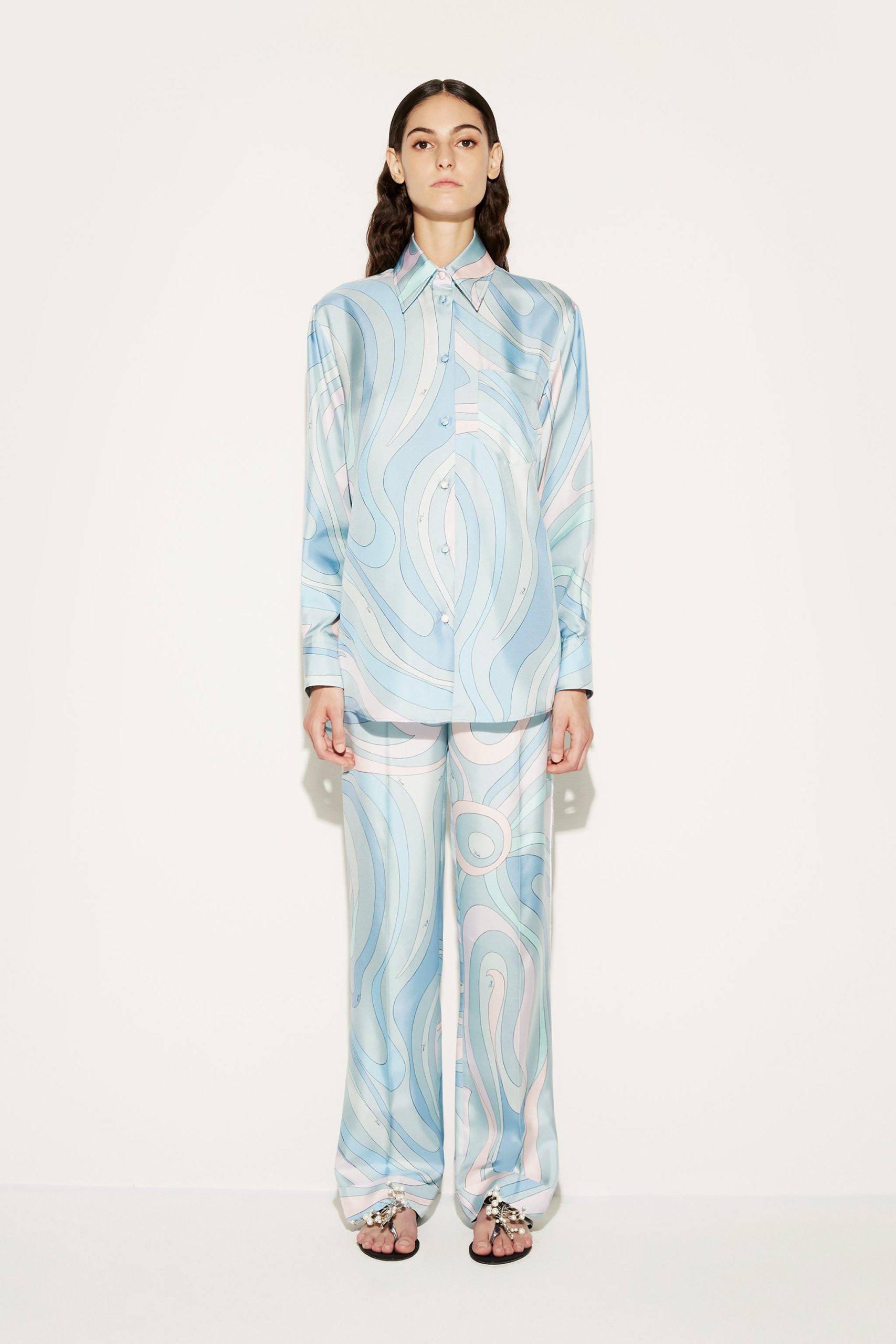This shirt celebrates Pucci’s famed pattern play. It’s cut from signature silk twill to an oversized silhouette and is decorated with the 1960s Marmo print: a motif revisited by Camille Miceli.