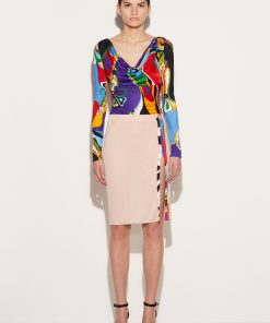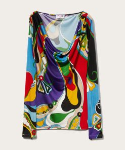 The floral-inspired Orchidee print covers this top in ornate pattern and brilliant colour. Crafted from fluid jersey, it’s cut with a wide cowl neck and long sleeves.