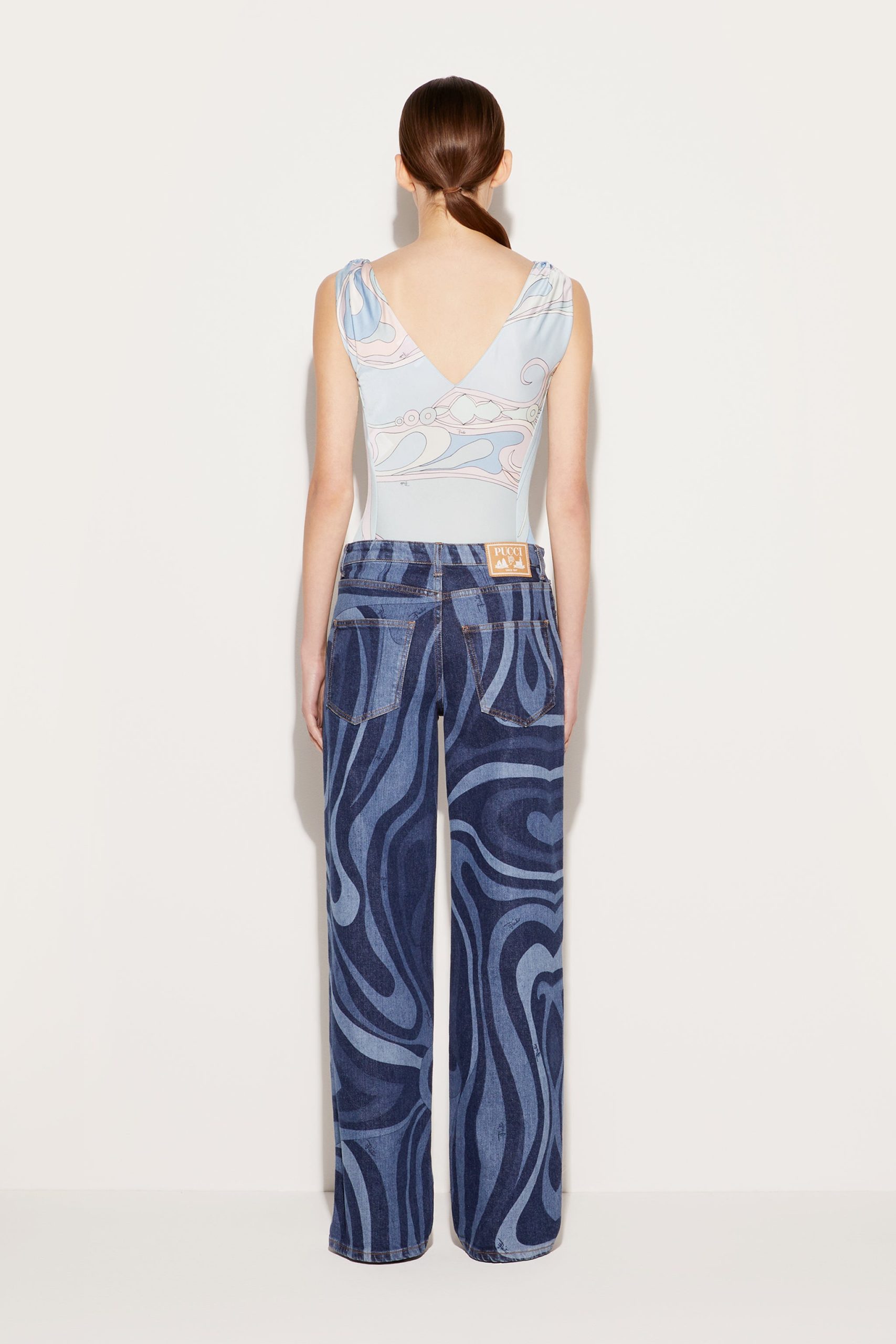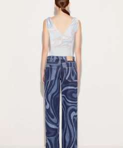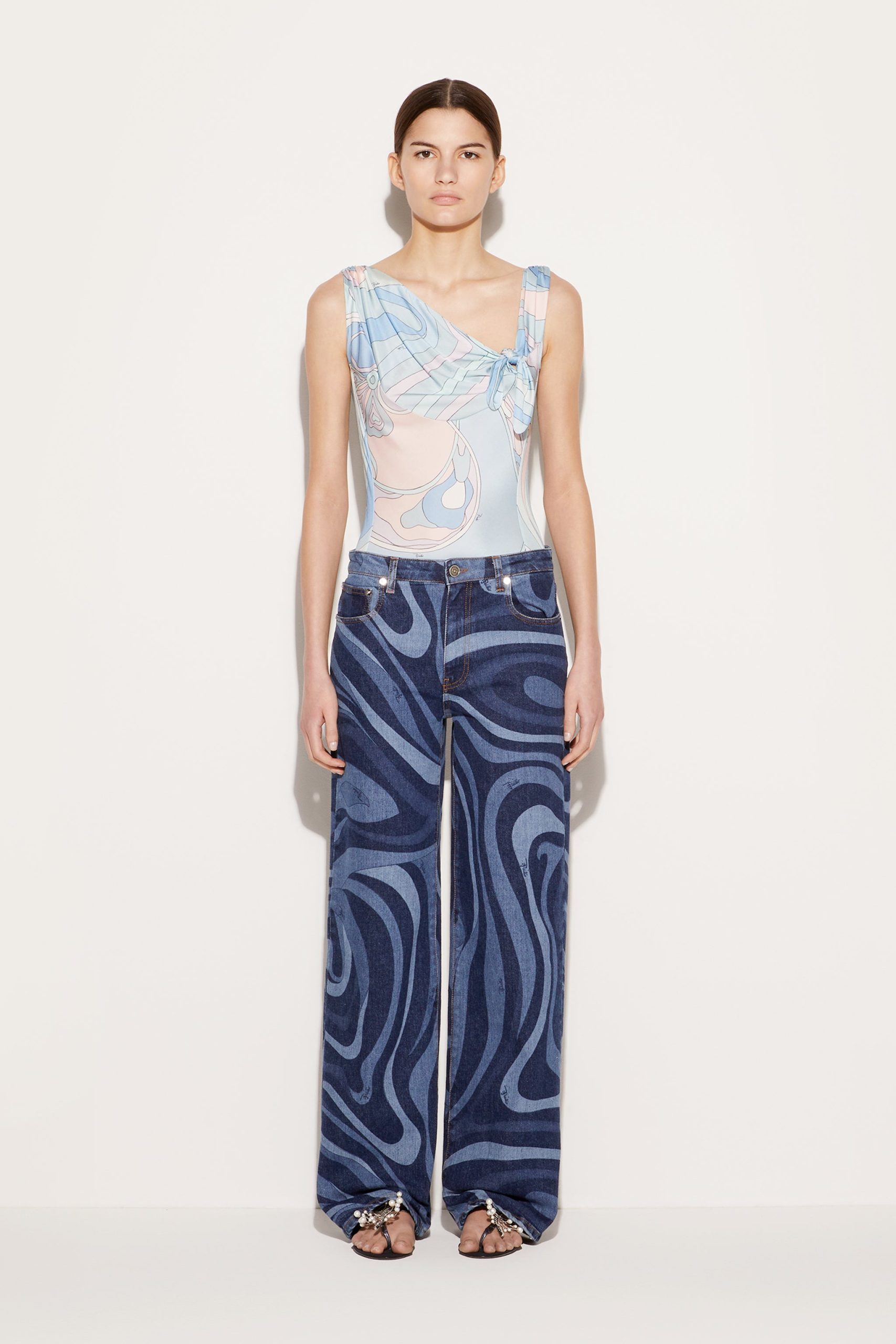 Bringing Pucci’s heritage into the here and now, this top is adorned with Camille Miceli’s interpretation of the archival Orchidee print. A knotted detail at the asymmetric neckline enhances its contemporary appeal.