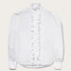Cascading, Iride-print ruffles invigorate this black shirt, transforming it into a statement piece. It’s cut from semi-sheer silk-chiffon with puffed-up shoulders and buttoned cuffs that enhance the voluminous sleeves.